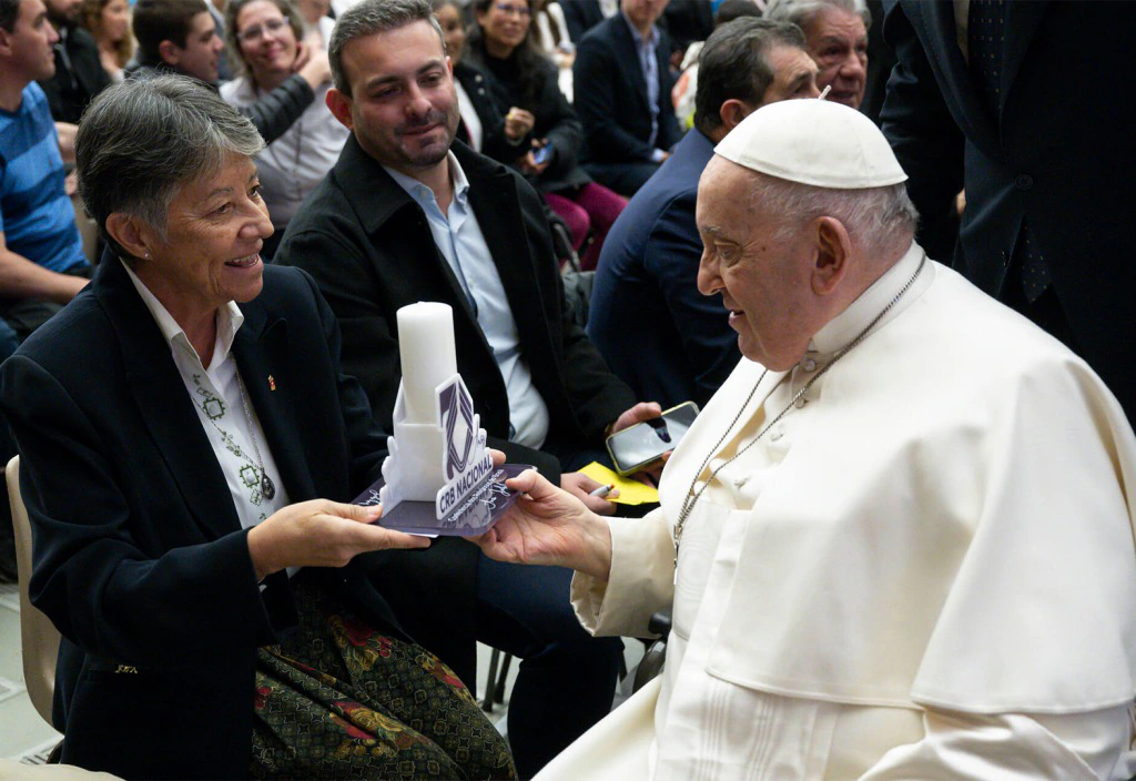 Crédito da foto: © Vatican Media Num momento histórico para a Conferência dos Religiosos do Brasil, a presidente da entidade, Irmã Elaine Cordeiro de Souza, participou de uma audiência exclusiva com o Papa Francisco, na Cidade do Vaticano. O ponto alto da visita foi a entrega do símbolo comemorativo dos 70 anos da CRB Nacional, […]